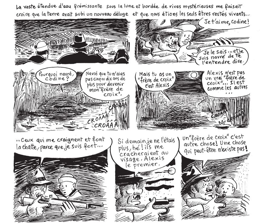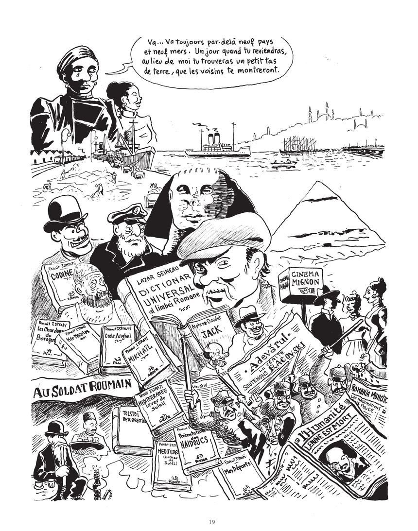 L’auteur de BD Golo a écrit et dessiné en noir et blanc une magnifique biographie dans laquelle il restitue à la perfection la personnalité et la vie tumultueuse d’Istrati : son enfance dans les quartiers mal famés de Braïla en Roumanie, sa mère Zoïtza, son amitié avec le bagnard Codine, ses nombreux voyages à travers l’Europe et le Moyen Orient, la misère et la faim, son amitié avec Mikhaïl le noble russe déchu et vagabond comme lui, son amour de la lecture, son désir d’apprendre le français, sa tentative de suicide, sa rencontre avec Romain Rolland, le soutien indéfectible de son ami et compatriote, le bottier Ionesco, qui l’a poussé à écrire… A chaque page, la personnalité débordante d’Istrati vous submerge. Hors norme, envahissant, fatigant, tonitruant, il bondit hors des pages pour vous parler droit dans les yeux d’une voix que j’imagine puissante et rocailleuse avec un fort accent roumain.